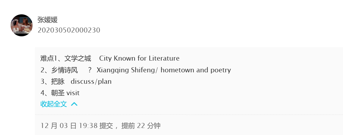 学有余力的同学还可以分享景点中其他的翻译。附加分8分