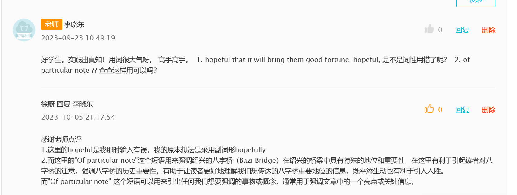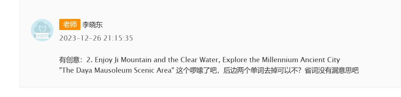 学有余力的同学还可以分享景点中其他的翻译。附加分8分