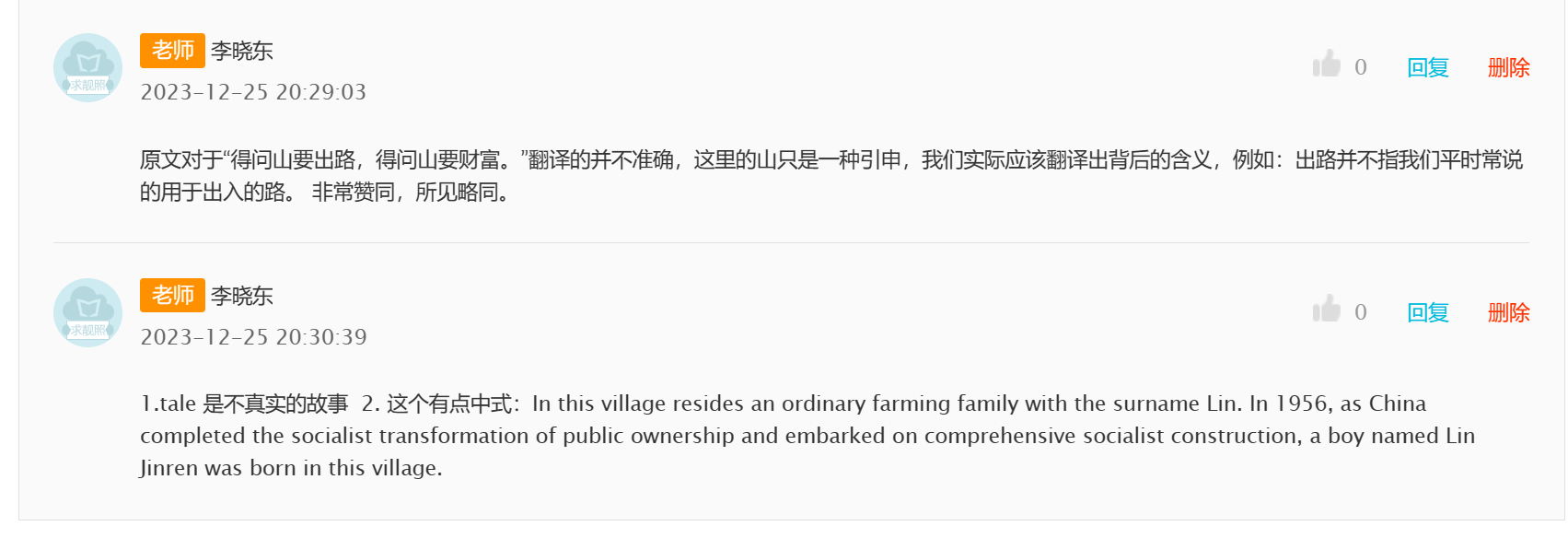 原文对于“得问山要出路,得问山要财富。”翻译的并不准确,这里的山只是一种引申,我们实际应该翻译出背后的含义,例如:出路并不指我们平时常说的用于出入的路,以下是我的译文