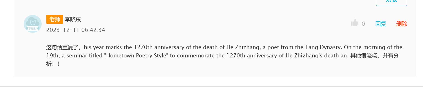 He Zhizhang, who moved to Shanyin (now Shaoxing City) in his early years, was famous for his poetry and prose from a young age. He is also recorded as the first top-scorer in the Imperial Examinations in the history of Zhejiang. His poems, such as "Ode to the Willow" and "Casual Writings on Returning Home," are widely known and have been passed down through the ages. The experts attending the meeting expressed that further exploration of the cultural connotations embodied by He Zhizhang and the continuance and development of his legacy are essential for the prosperity and development of Shaoxing's poetry, ultimately contributing to the creation of a "City of Literature."