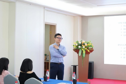 首先,王冰凌校友举办了一场学生干部分享交流会。他幽默风趣的和在场的学生干部们进行交谈,对学生干部的角色定位进行了详细的解说,并指出学生干部中所存在的主要问题和解决方法,同时对仪表礼仪,宿舍相处礼仪等进行了详细的展开。紧接着,王冰凌校友邀请大家参观了新澳馆,并逐一进行介绍。